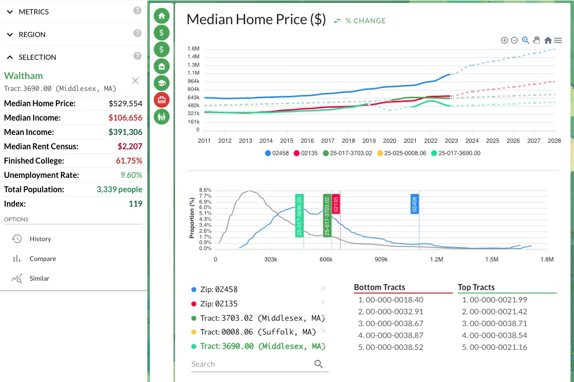 This sounds minor. It's not. When you're looking at a trend chart that extends to 2025 and the last hard data point was the 2020 census (or a 2022 ACS estimate), everything after that line is a forecast. The old analytics panel didn't distinguish between the two. You'd see a smooth line trending upward and naturally assume the trend was established, when in reality the last three years of that line were statistical projections based on earlier data.
