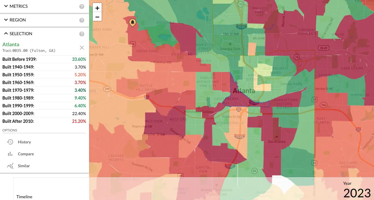 2023 Housing stock distribution by Census tract in downtown Atlanta, source: Investomation