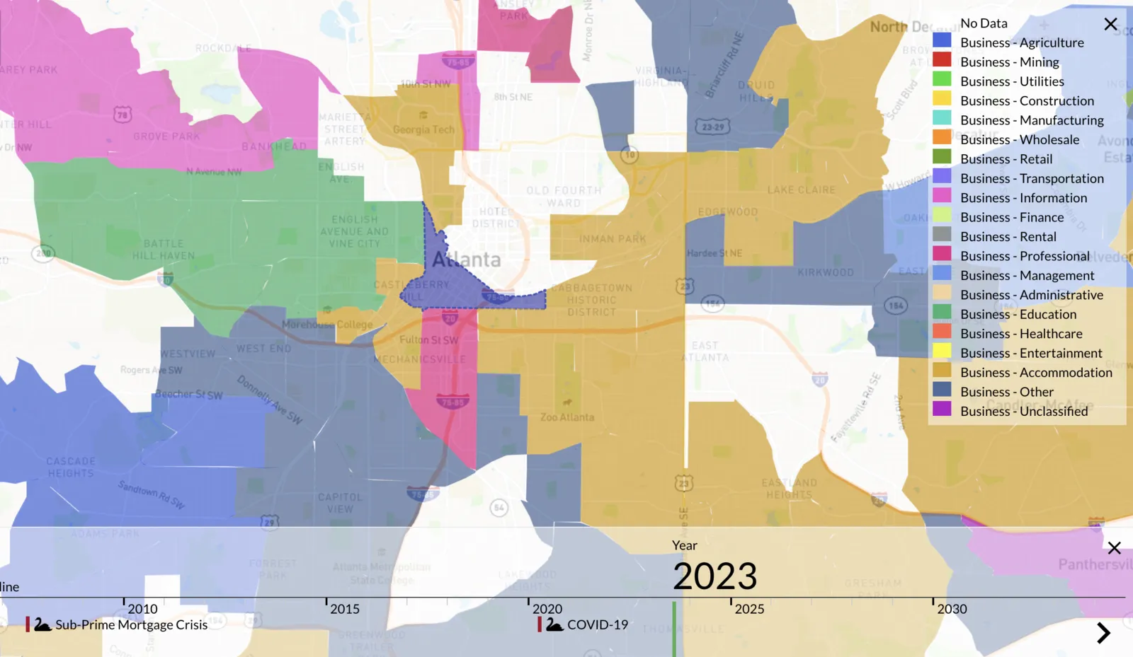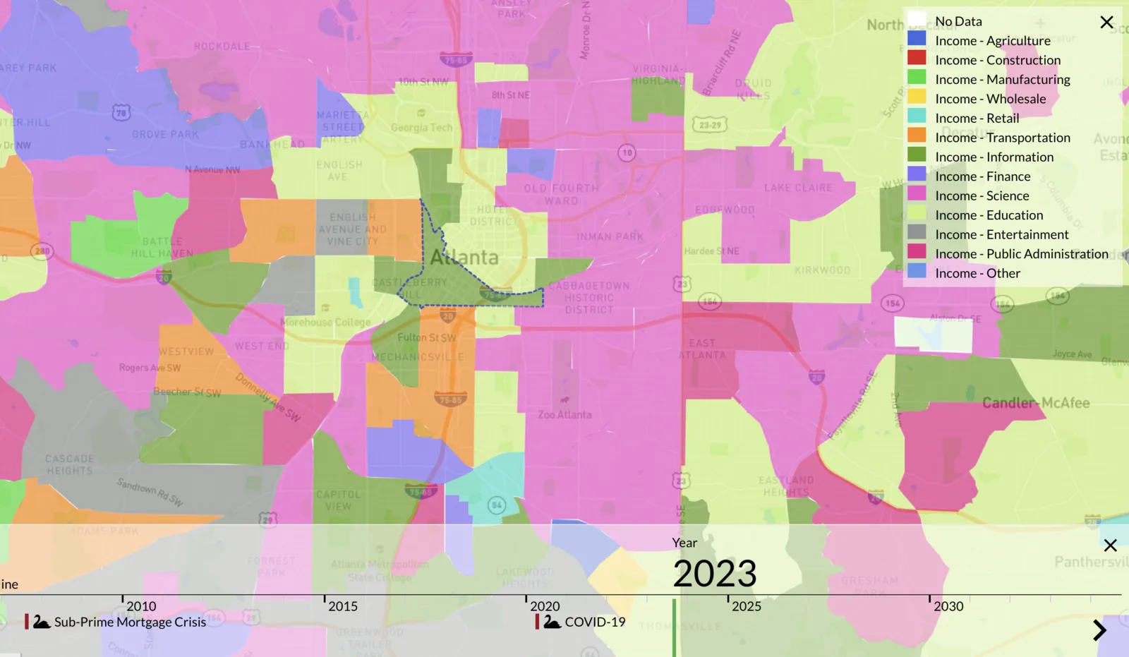 2023 Income source and business distribution by Census tract in downtown Atlanta, source: Investomation